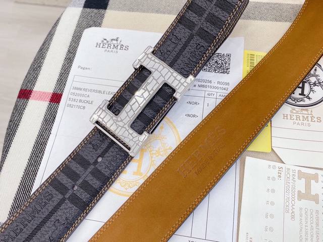 / Hermès爱马仕经典元素,正反两面呈现不同色调,扣头金属工艺,经手工打磨而成,环绕细节,定格精彩瞬间。38Mm.