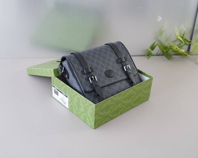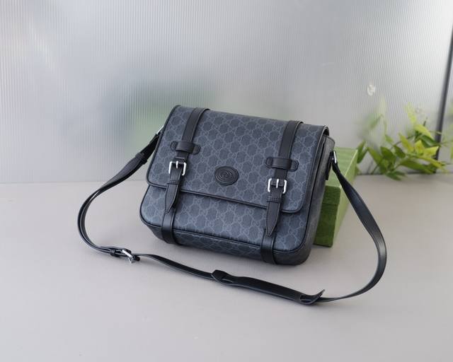 Gucci 古奇 Gg印花翻盖邮差包 男士休闲单肩斜挎包 超大容量 电镀激光雕刻五金 高品质 附带 防尘袋 规格 23 X 30Cm