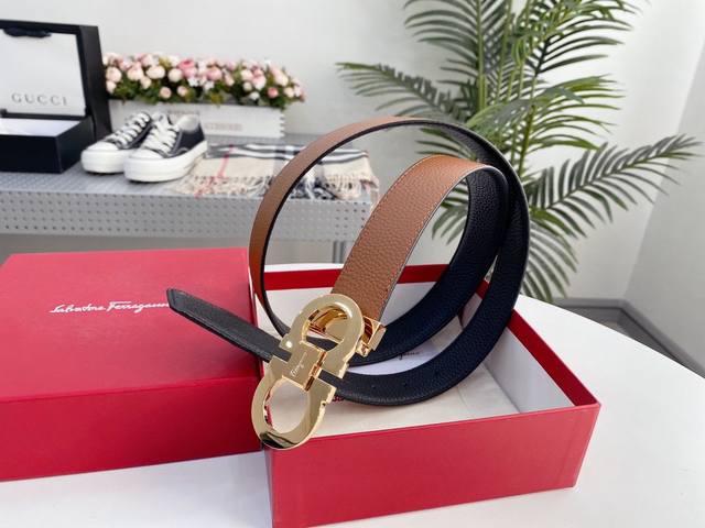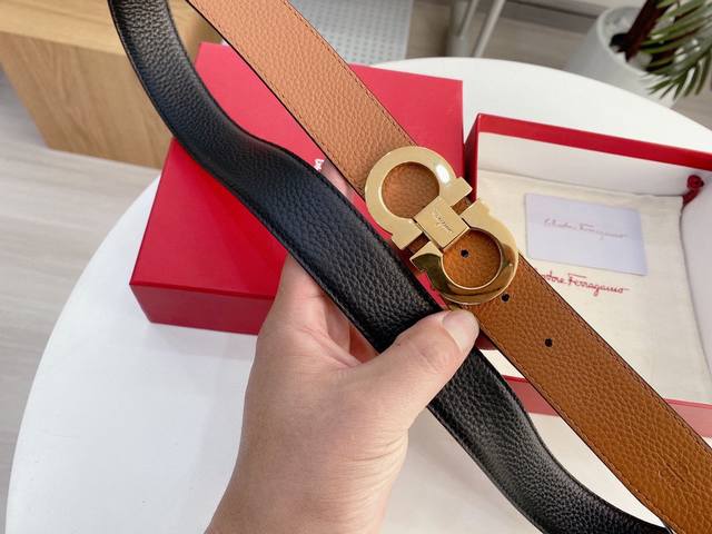 新款菲拉格慕 Ferragamo 带身双面可用。钢扣原版专柜同款高档腰带 . 带身采用菲拉格幕专柜最新元素、原版款式,大气有光泽度, %进口原版牛皮,扣头采用纯钢材质结构,持久耐用,永不退色,显档次有品味,搭配新款扣头,时尚百搭,上身效果超好,休闲商务百搭。送礼自用首选!火爆款式,抓紧转图。
