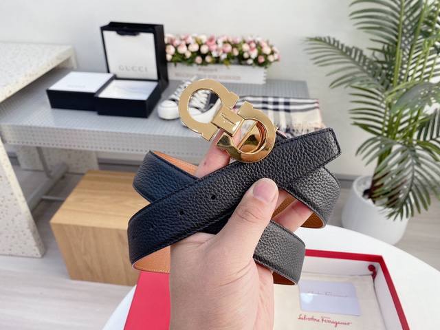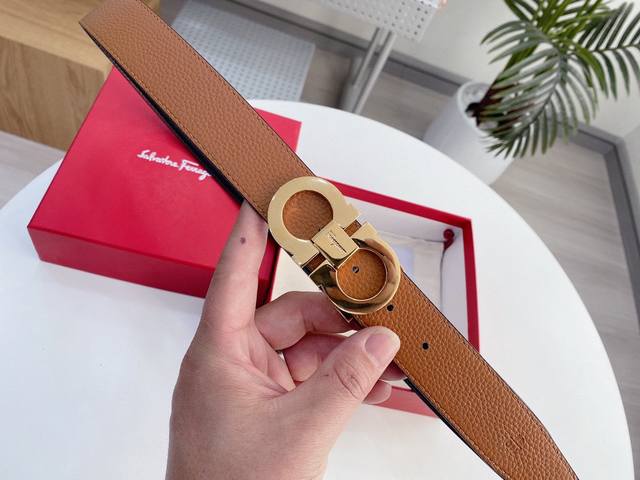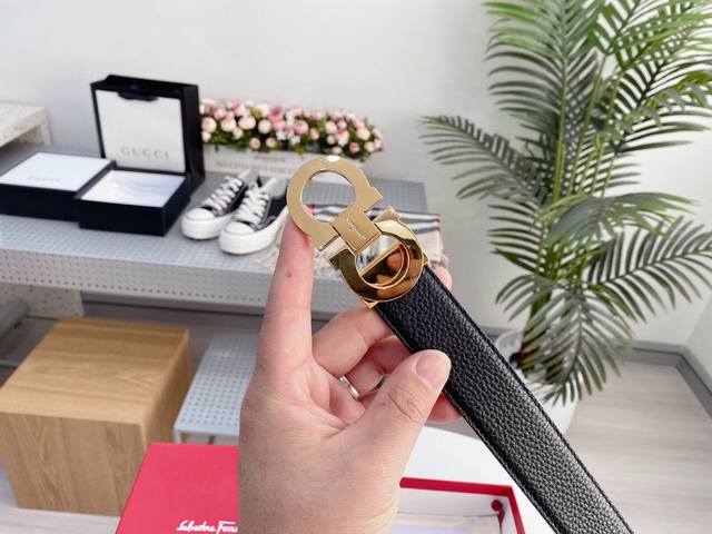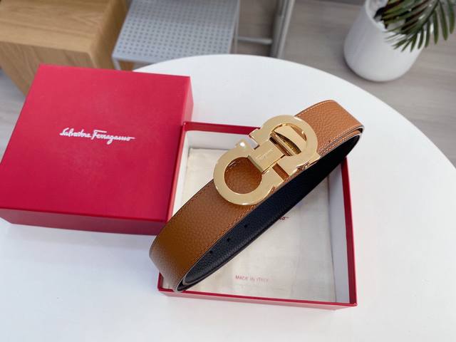 菲拉格慕 Salvatore Ferragamo 意大利 宽度3.5Cm 精美扣头 不褪色 小牛皮 手感极佳 上身郊果棒 商务休闲两用