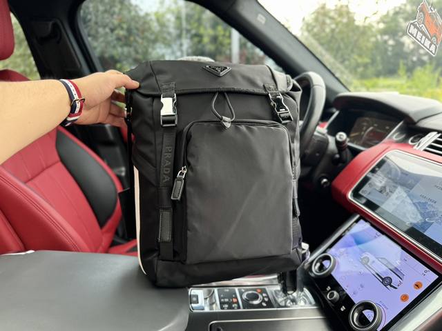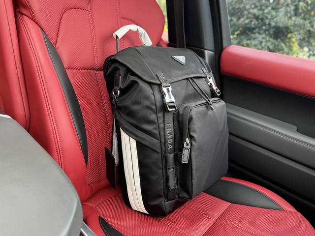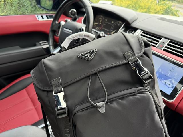/ 高端货 “Prada 普拉达”双肩包 Prada普拉达 品牌logo标志拉链开合 皮革尼龙 背包双肩包 男女同款情侣款 黑色 进口原厂防水布艺面料高清五金log