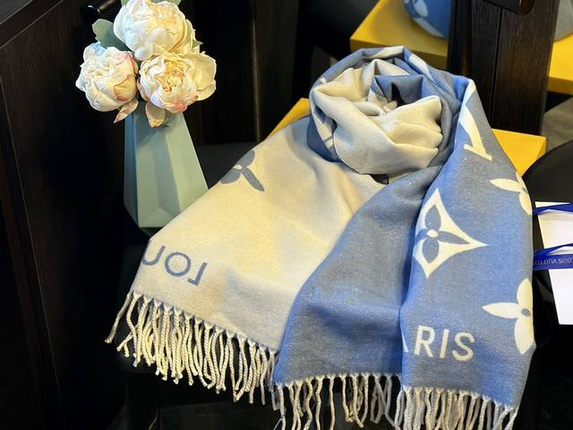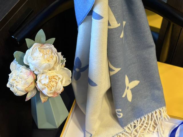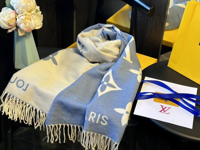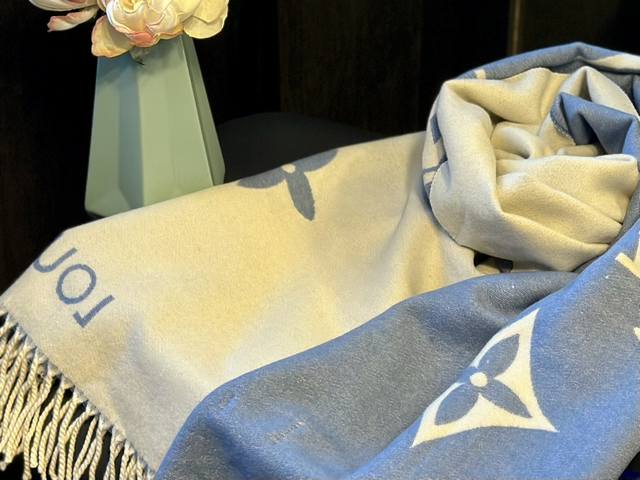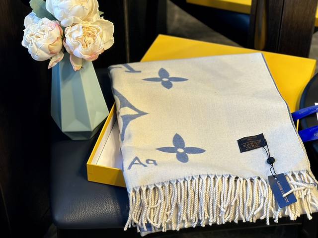 / 羊绒 礼盒+25元 Size:70*180Cm Lv 新款提花双面围巾 双面可用 羊毛手感超级厚实柔软舒服 自带高级气场, 稳稳的“高段位”