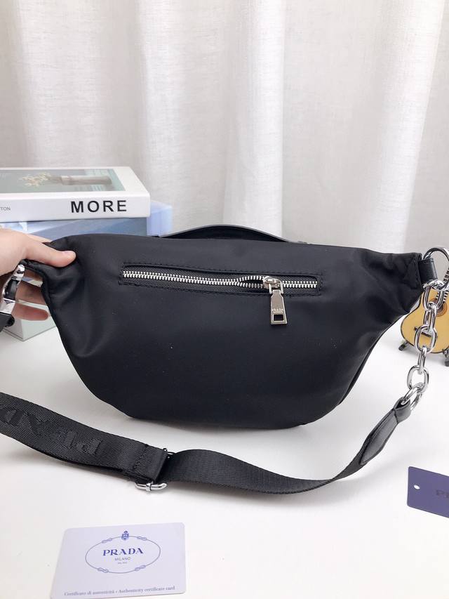 普拉达prada 腰包,胸包 各路洋气美妞必入款,又是一款赚口碑的包包~实物超好看 休闲尼龙防水布包包 随意背 怎么背都好看 气质女神 洋气美妞 时尚妹子都ok,街拍首选!大号尺寸:34*21Cm