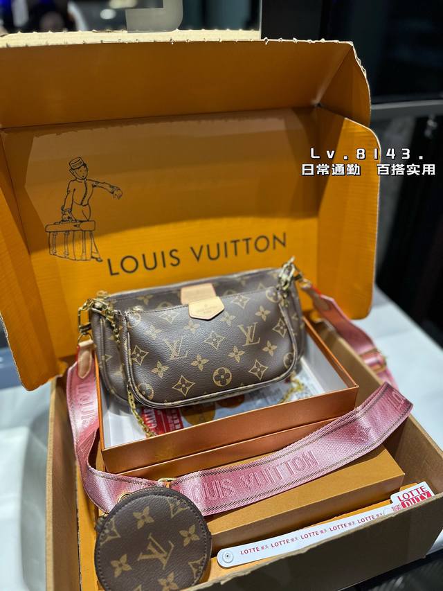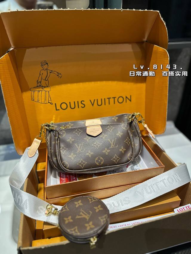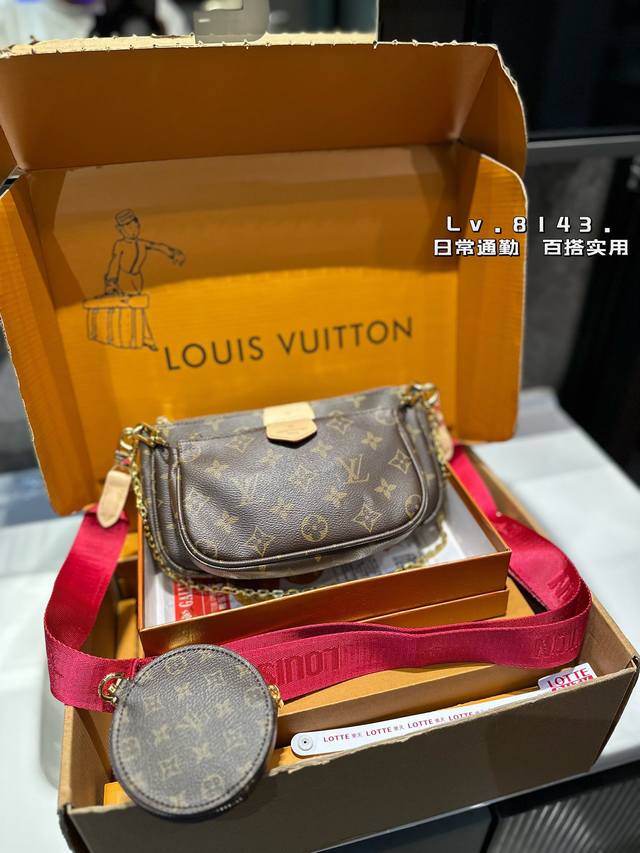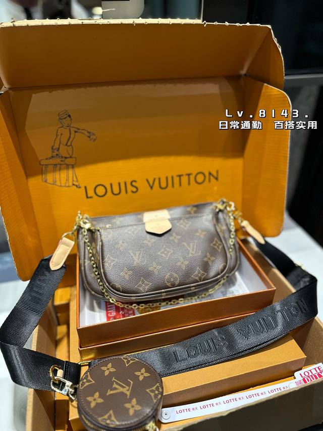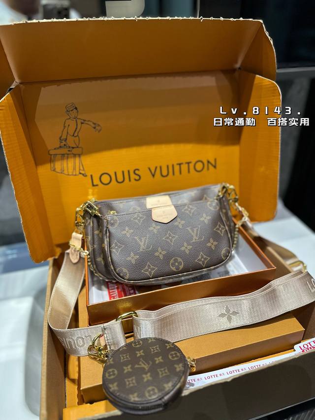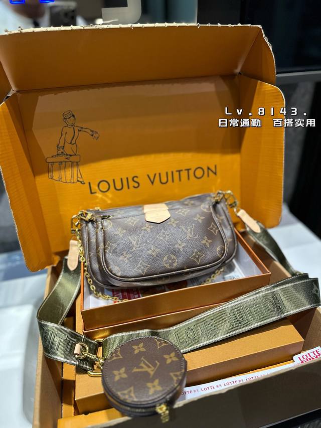 -Lv Multi Pochette五合一麻将包 Lv三件套麻将包 柔软的面料一包四用。可当钥匙包。小容量零钱包、大容量麻将包,编织肩带还可以与其他包包搭配使用。钥匙包可以用来当配饰。秀气的链条小包可单肩可斜挎。超级实用。新颖别致 尺寸:大包23*13Cm 、小包18*11Cm 、圆饼包10Cm