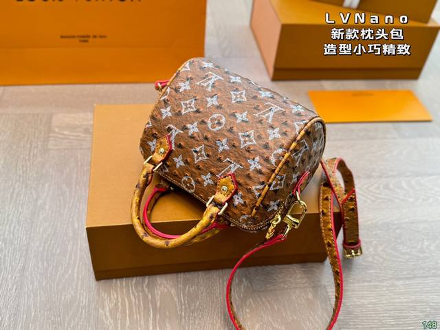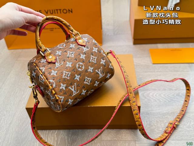 Lv Nano枕头包 真的很精致啊!一眼击中你的心! 虽然小巧但是装的也很多,口红粉饼镜子卡包纸巾耳机都是可装的,包包可手提也可以斜挎,手提真的很有女人味耶!