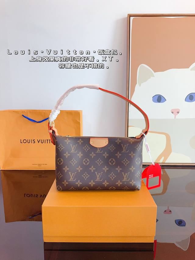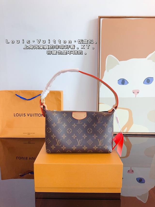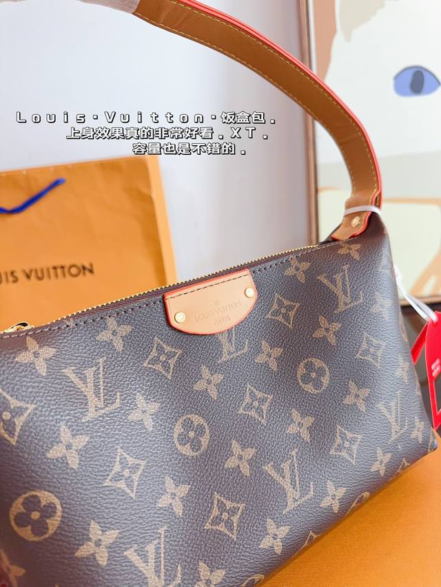 配礼盒. Lv Hobo饭盒手提包. 很有质感 可盐可甜 上身绝美 无可比拟 是每个追求漂亮的女孩必入单品 尺寸:24*9*15Cm