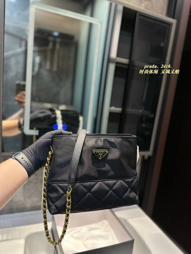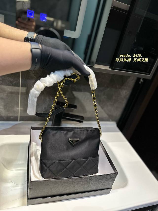 / 礼盒包装 普拉达prada朱珠同款尼龙链条包火的原因无非就是黑金高级、尼龙轻便、设计极简风格、实用耐用又好打理、又能装东西尺寸:大号25 20 小号21 18
