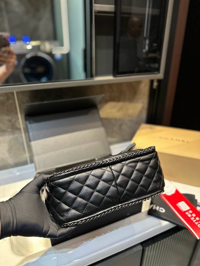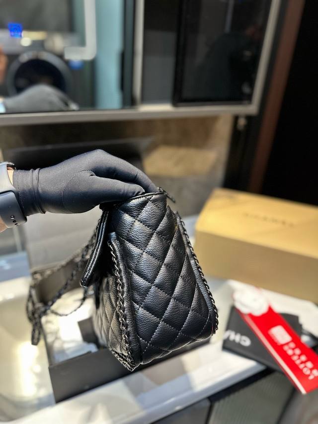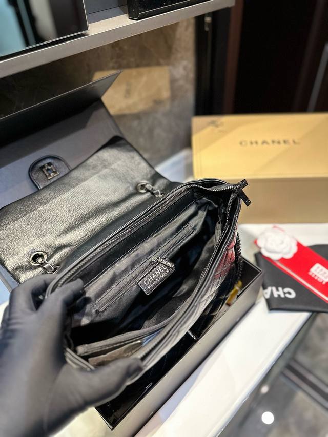 小号 香奈儿chanel 24A 新款抛光油蜡皮口盖包迷你链条包 尺寸18×12×5 礼盒包装