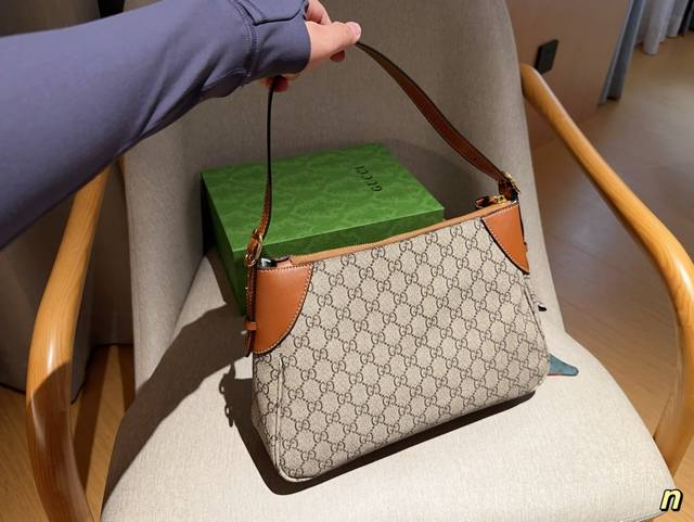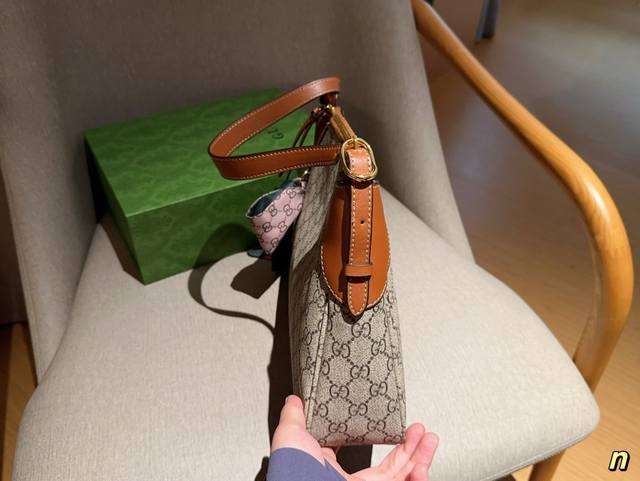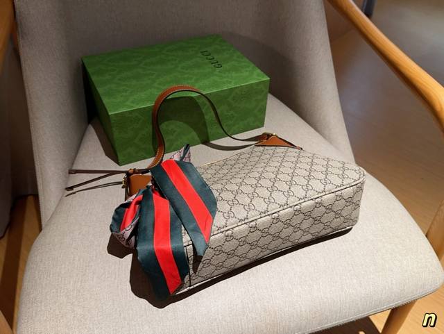 大号 配送丝巾 古奇gucci Emblem 系列牛角包 尺寸32×22×8 礼盒包装