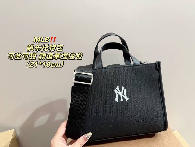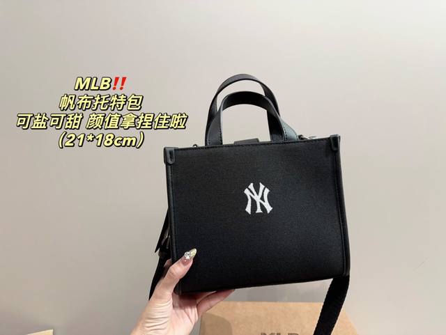 / 配盒尺寸18.22 Mlb 帆布托特包 完全拿捏了我心巴 小托特包真的实用 手机充电宝遮阳伞 还能带补妆的东西 这个配色超级吸睛 夏天出门拍照真的一直被问
