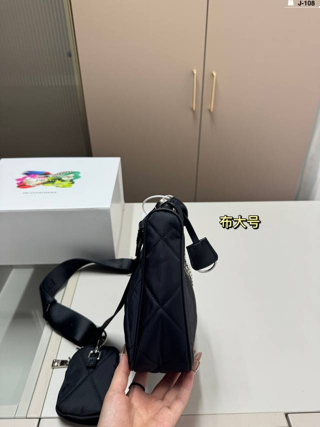大 Prada普拉达hobo三合一菱格腋下包 脑子里是瞬间相出了n种搭配方式,非常的百搭,上身也非常的好看 J-108尺寸24×13 21×11折叠盒