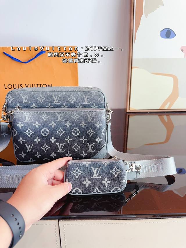 / Lv经典爆款pochette Trio男包三合一大包+麻将包+零钱包 3个包包和1条肩带组成,各个部分都可以拆解,随意组合搭配 肩带可调节,可单肩 斜挎 好看好