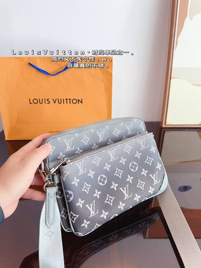 Lv经典爆款pochette Trio男包三合一大包+麻将包+零钱包 3个包包和1条肩带组成,各个部分都可以拆解,随意组合搭配 肩带可调节,可单肩 斜挎 好看好