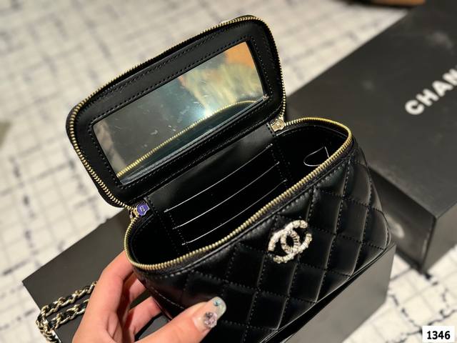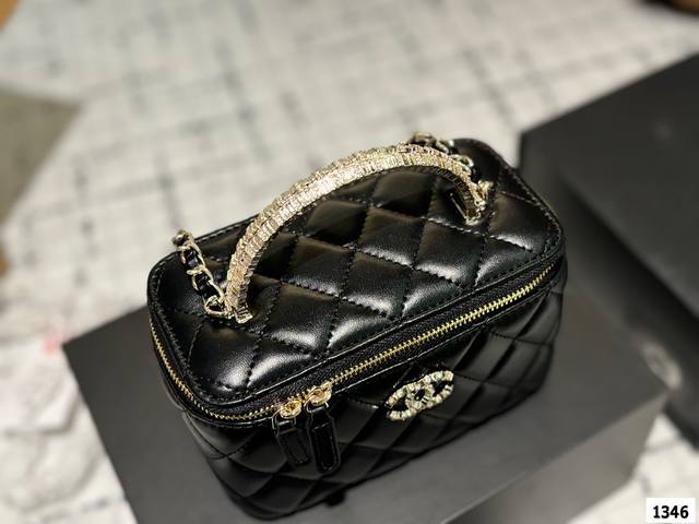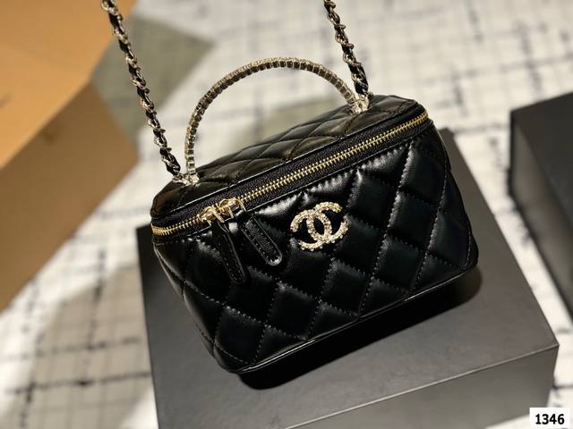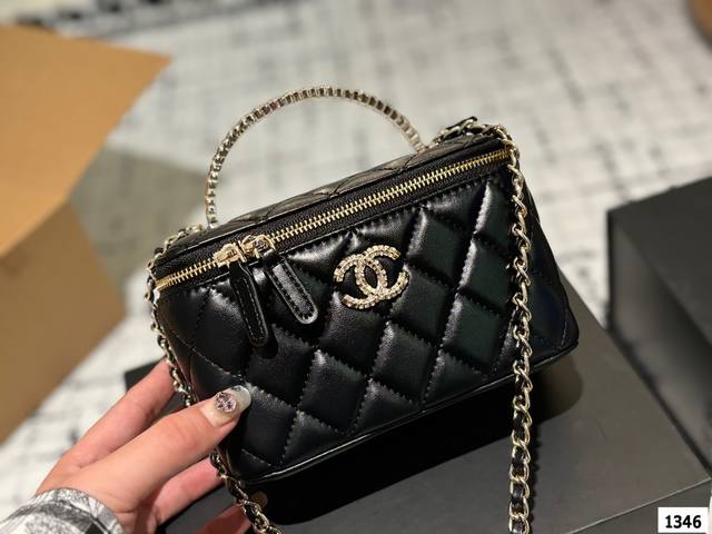 Chanel 新品 高级镶钻手柄 盒子包 化妆包 小箱子 最近的盒子包系列真的好火,小盒子当然是异常可爱啦。尺寸 18Cm