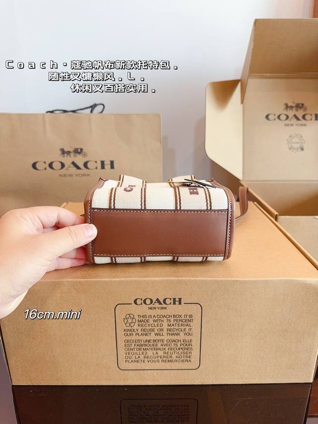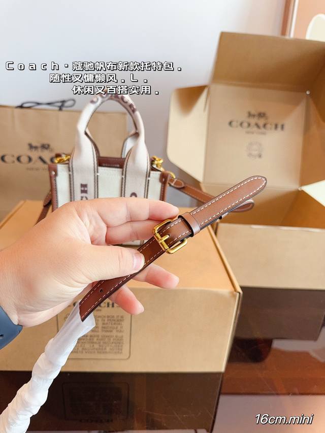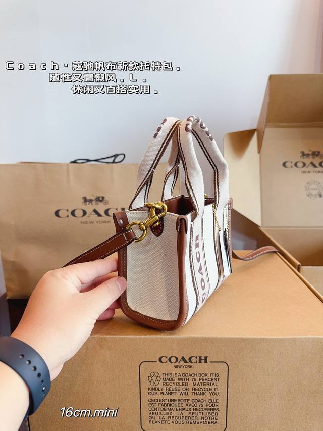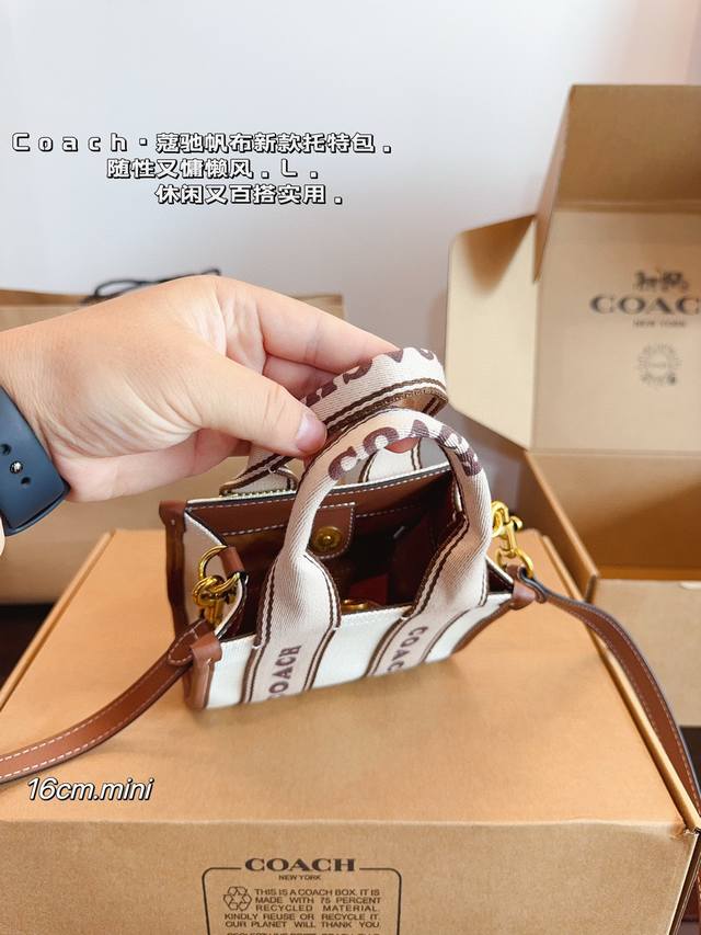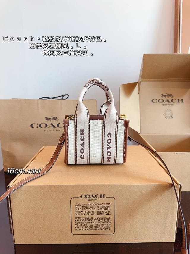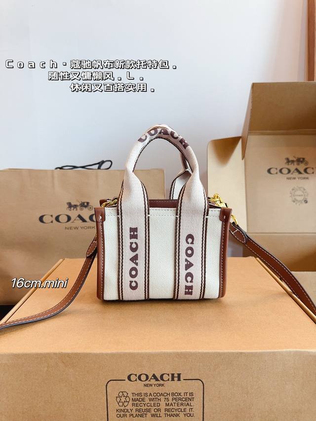 配礼盒. 蔻驰.7月新品. 小而可爱的包包 C家 Coach Smith 帆布托特包. 棕色皮革搭配自然色帆布 满满活力 超q超元气尺寸:16*8*13Cm