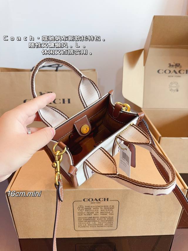 / 配礼盒. 蔻驰.7月新品. 小而可爱的包包 C家 Coach Smith 帆布托特包. 棕色皮革搭配自然色帆布 满满活力 超q超元气尺寸:16*8*13Cm