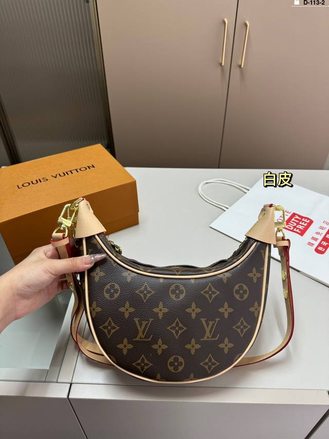 Lv 月亮包 白皮 由lv中古豌豆版改版而来 实用耐看 很好用! D-113-2尺寸22.6.11折叠盒飞机盒