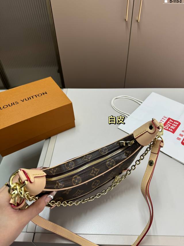 配礼盒. Lv 2025新款Boulogne牛角包 拉链 老花 皮肩带 轻便 大容量▼ 斜挎 单肩 腋下 手提 一包四背,链条点8和肩带都可拆卸...