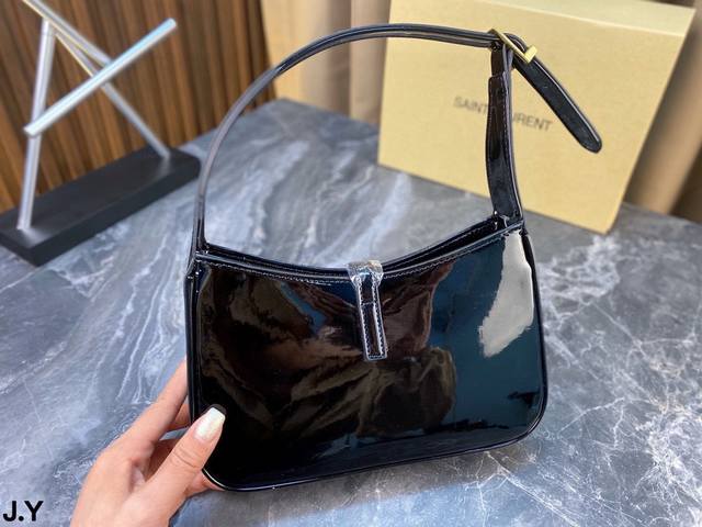 Ysl 漆皮mini腋下包 极简大方且高级感超足的造型 包身轮廓简洁、立体 看上去硬挺却不会太凌厉 搭配上品牌标志性包扣 整体给人一种既经典优雅 又很时髦现代的独特气质 黑金搭配简直就是神仙组合呀 包包容量充足 日常出街超级方便!尺寸:24*13