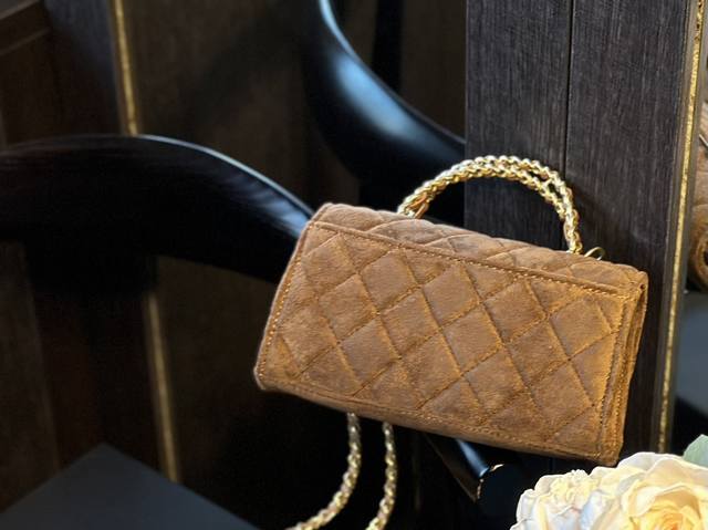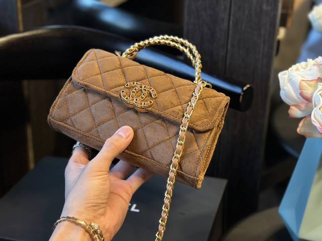 麂皮 折叠礼盒 Chanel 小香家 双手柄 Kelly 绝绝子 手柄小凯莉包 上身 瞬间被点燃y!! Size 16Cm