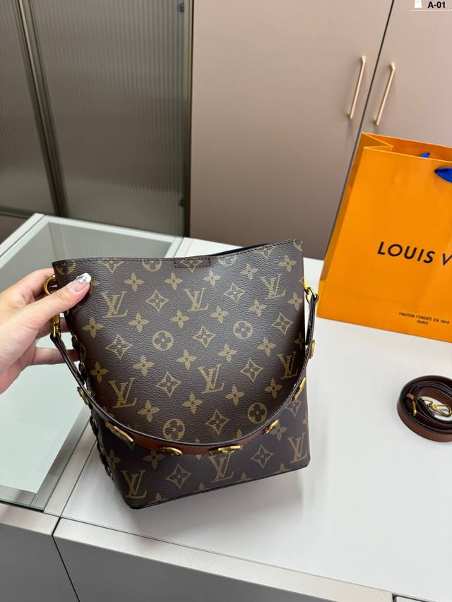 / Lv路易斯威登le37水桶包 徽章手提极简风格 时尚大气 时髦毫不费力 任何风格轻松驾驭 A-01尺寸18.12.23配盒