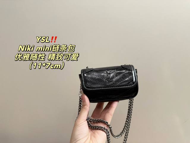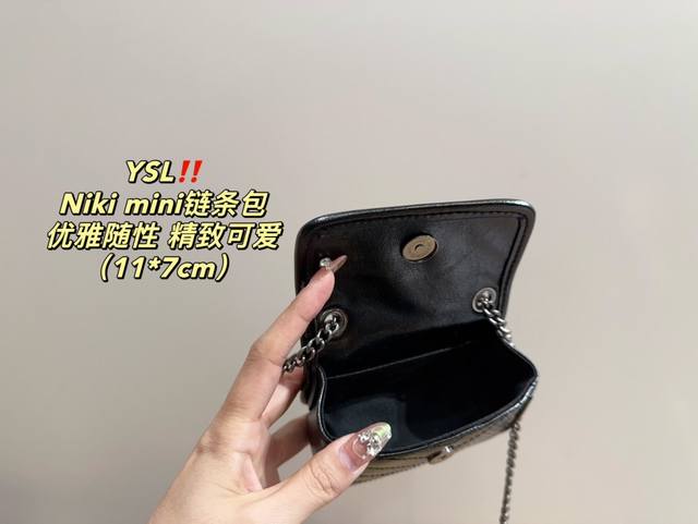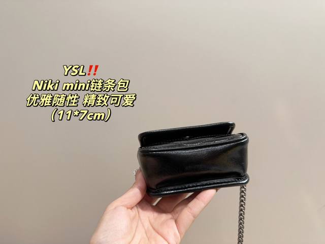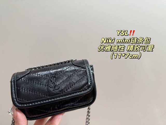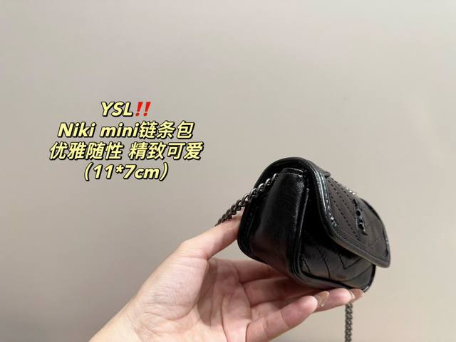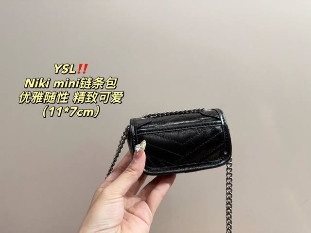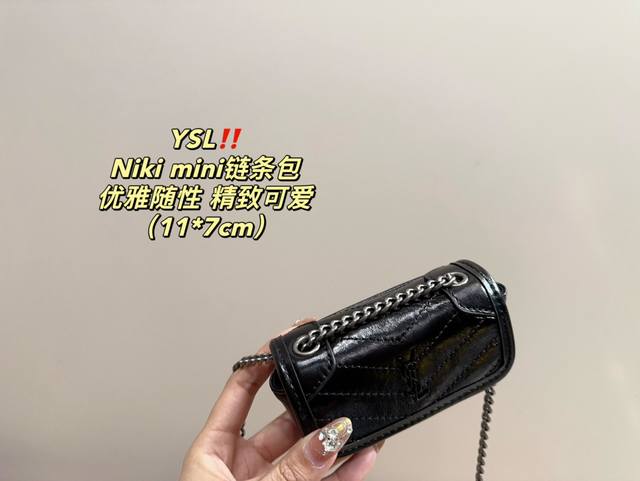 尺寸11.7 圣罗兰 Ysl Niki Mini链条包 油蜡褶皱牛皮,五金更是特别,五金表面也是油腊皮覆盖多功能使用 单肩斜挎 上身效果 极为优雅随性洒脱 衣服