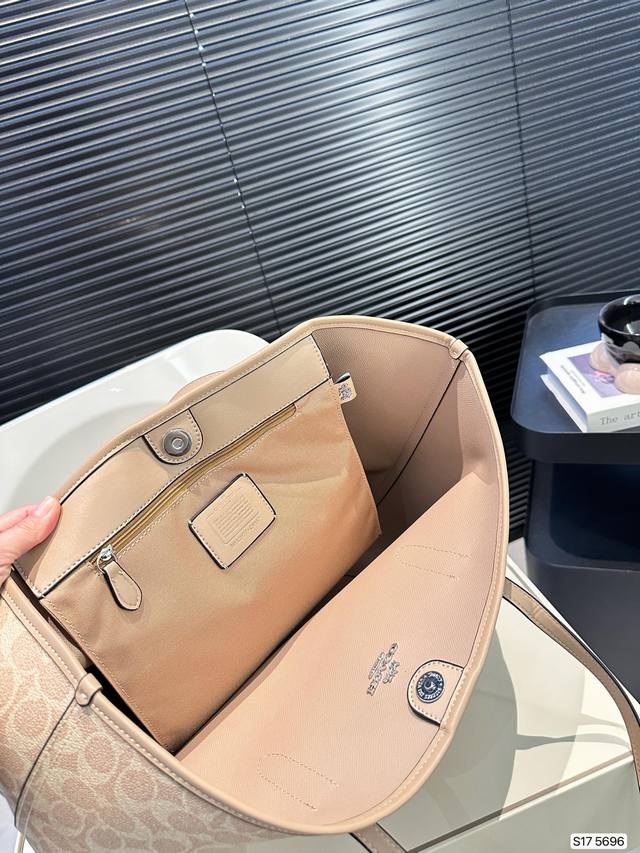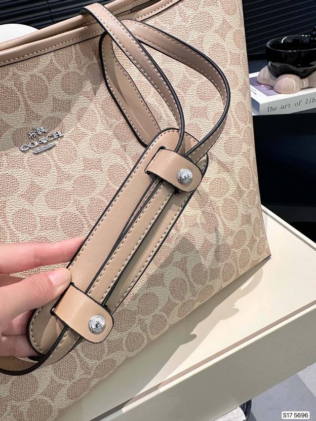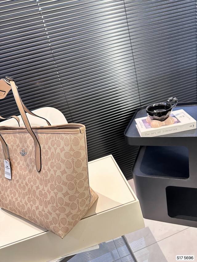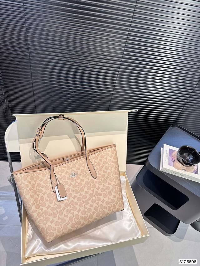 / 配折叠盒子 温柔奶茶色 蔻驰购物袋 超火的tote托特包,日常通勤都非常可会越用越喜欢的一款,值得入手。尺寸:32 27 货号5696