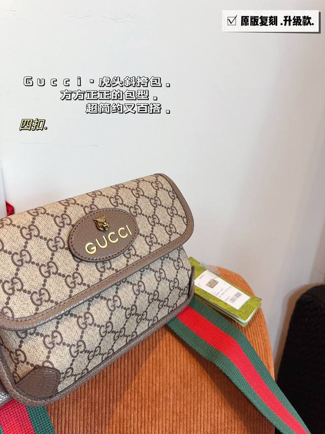 配礼盒 Gucci古奇 24新款虎头腰包百搭款marmont 酷奇虎头印花 单肩包斜女包 美到无法无天的款式 今年简直引领时尚最in元素 上身超级好看 尺寸:2