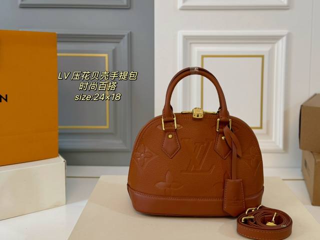 折叠盒 Size:24×18 Lv路易威登压花贝壳手提包 经久耐用,配款肩带上身超吸睛 手提,可单肩或斜挎 时尚与休闲无缝衔接