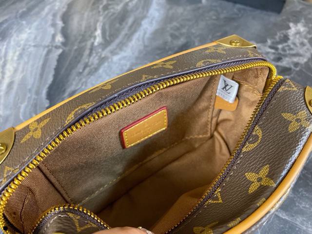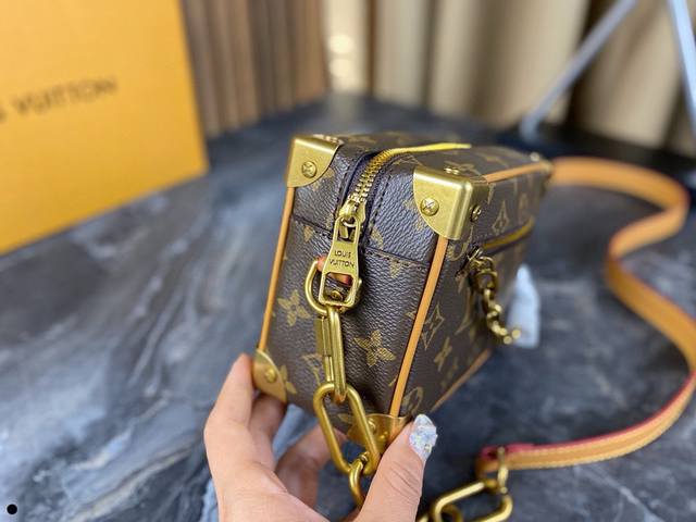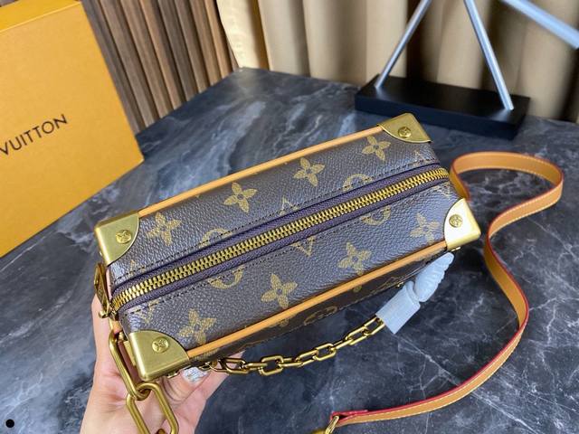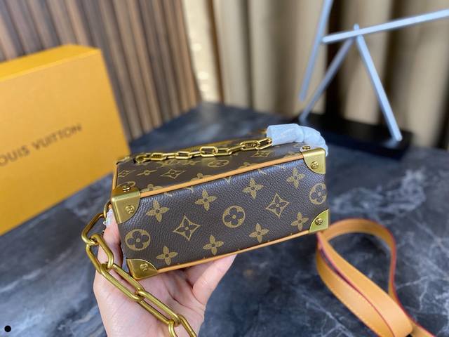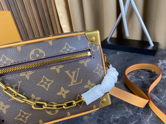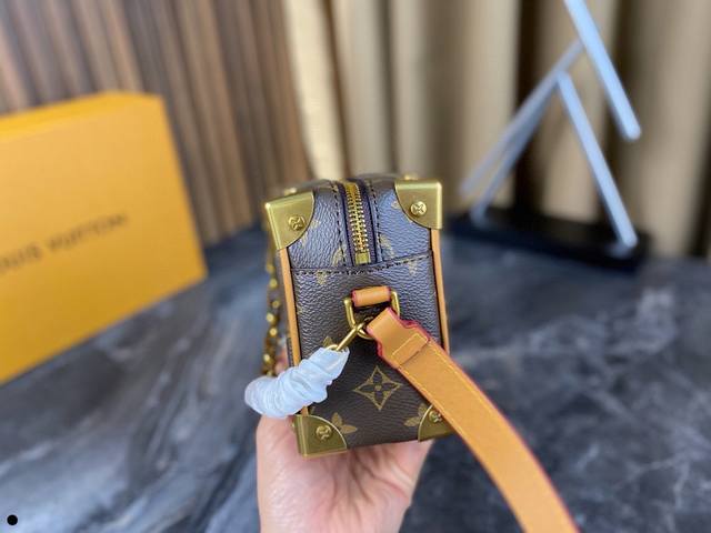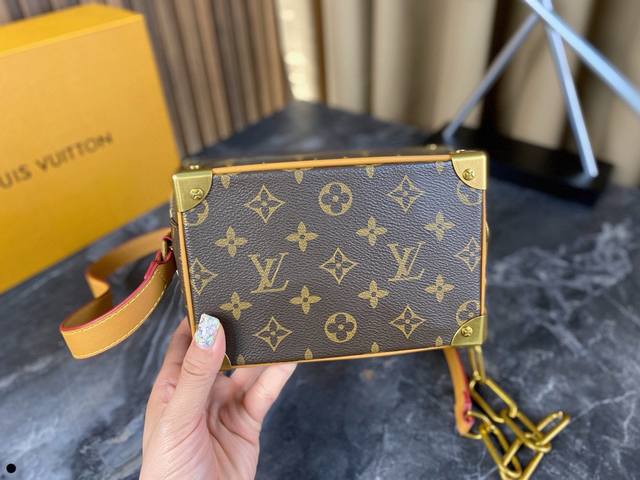 Lv Mini Soft Trunk老花软盒子包 酷劲十足 现在最流行的就是软盒子包 再也不用担心磕磕碰碰 或者掉落地上磨花了包包边角的金属也不用担心盒子包装不了什么东东 因为软盒子包的容量可是大大提升呀 这款包复古又时髦,炒级百搭,男女搭配都可以,内部容量很能装 优点这么多的一款包包你还有什么理由不心动吗?尺寸:18*12