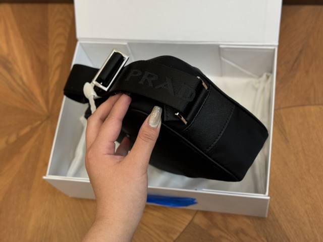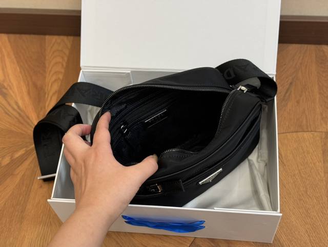 礼盒包装 Prada 普拉达尼龙布腰包 胸包 男士单肩背包 采用精湛镶嵌细工,经典百搭 实物拍摄 原厂原版面料 配送防尘袋 28 X 16 Cm