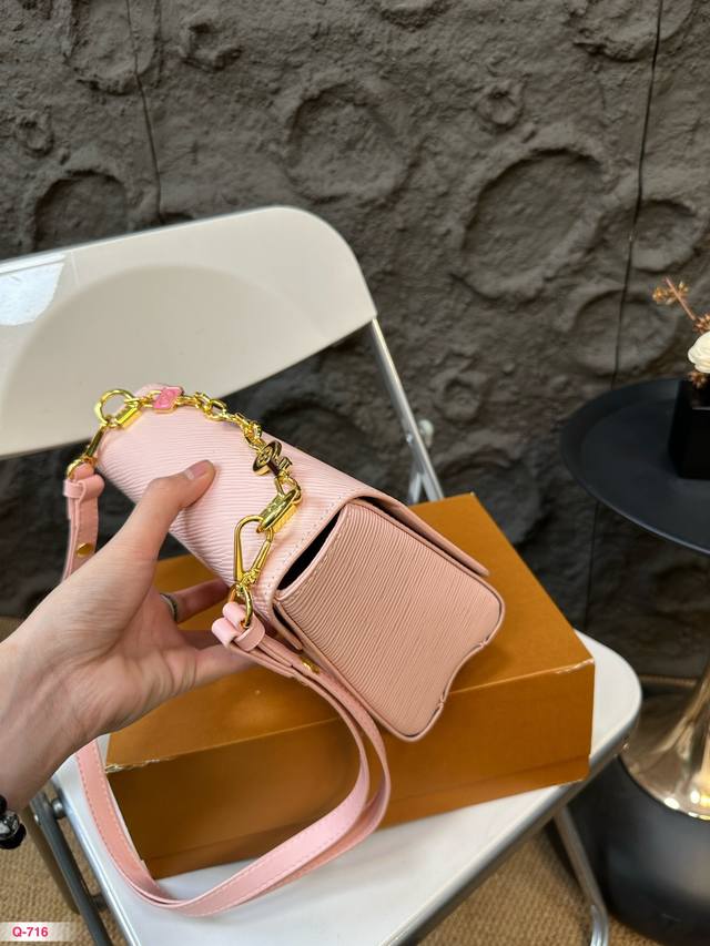 配折叠盒尺寸23.16 Lv Twist 毛绒单肩包 加上毛茸茸的元素瞬间软绵绵的 一下就温柔起来了。 秋冬很适合背毛绒包! 不仅手感很棒...