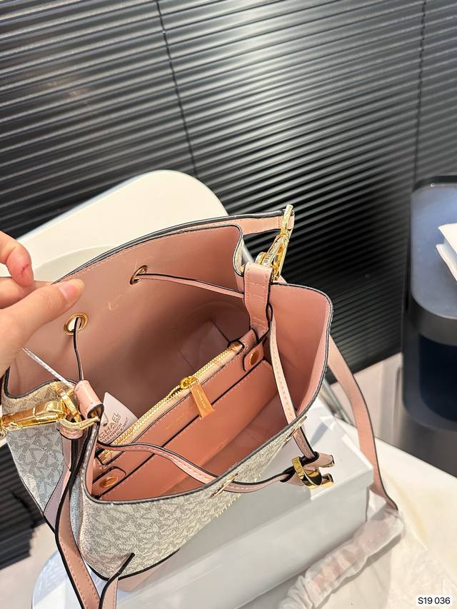 少女感十足,水桶包型超级时尚,很特别包身不大但是内里简直太能装了,很深日常出门完全够用,经典老花抽绳,粉粉嫩嫩的随便套件连衣裙西装都好看,上身瞬间觉得自己年轻了十多岁呐包型方正立体不易变形 尺寸:21 21 货号036