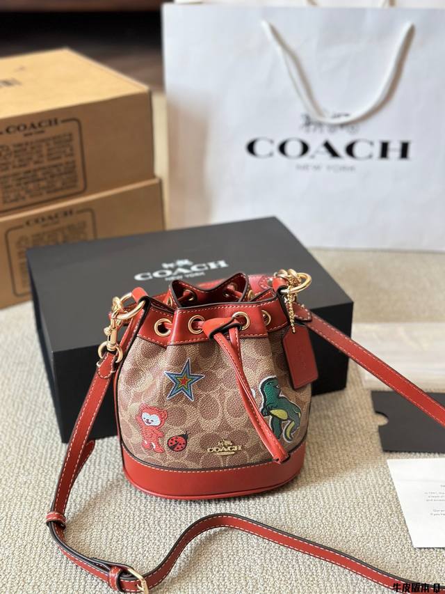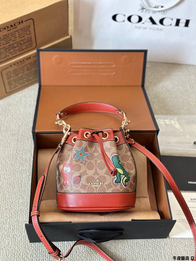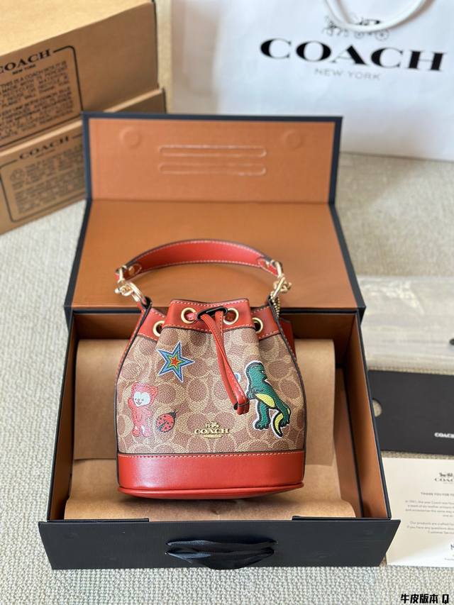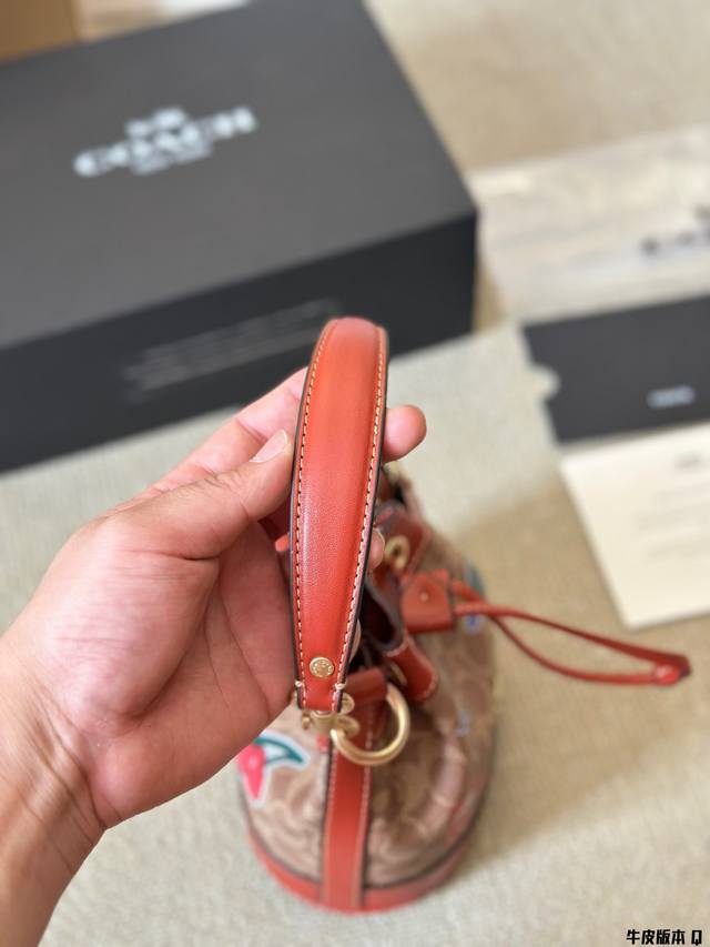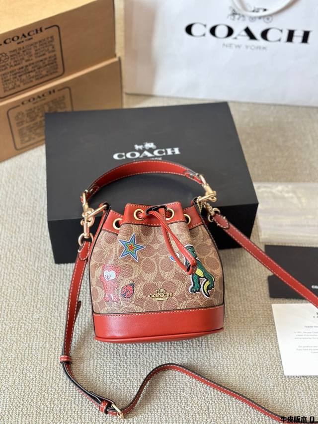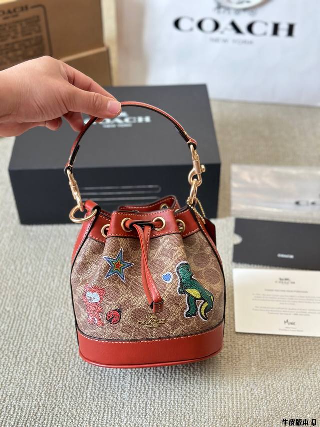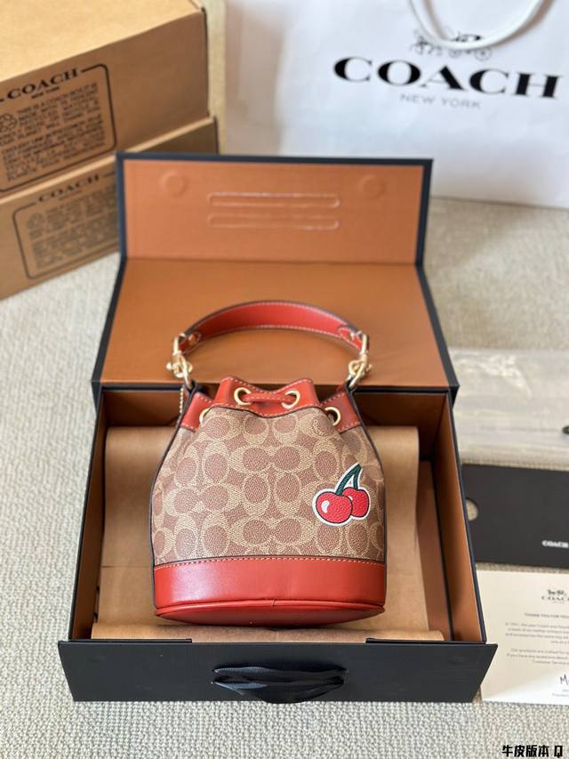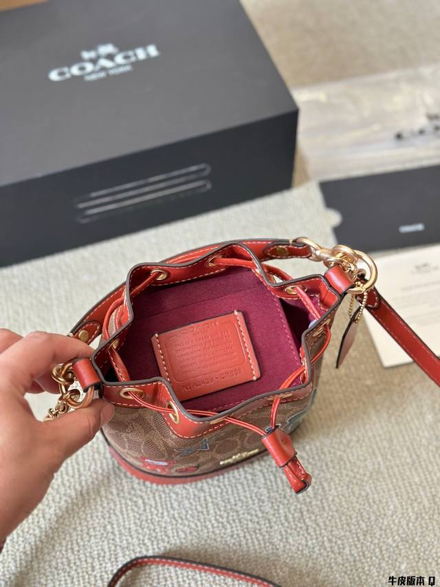 牛皮版本 Coach 迷你mini水桶包 抽绳设计开合 可手提可斜挎 一长一短两条肩带 可拆卸 尺寸 15 20Cm 太可爱啦奶呼呼的小可爱~~