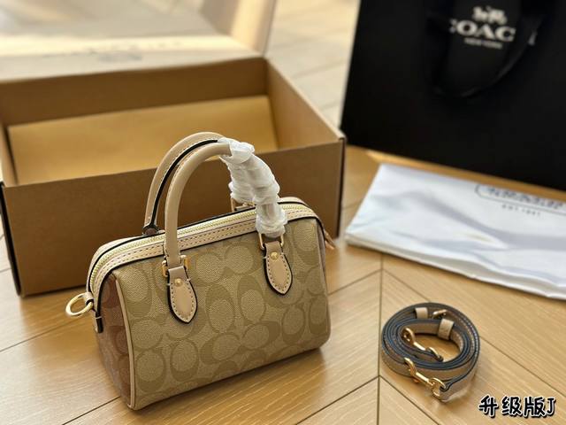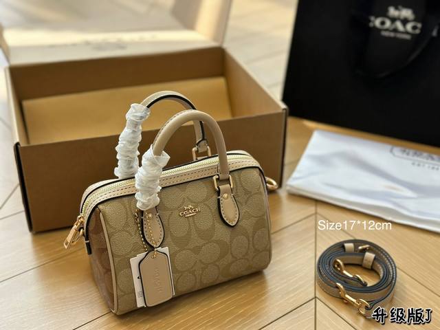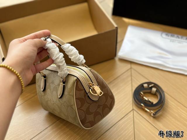 Coach蔻驰迷你波士顿包,Mini Rowan Crossbody经典老花配黑色牛皮,经典百搭不过时~小小的枕头包,更加精致和可爱,同时能满足手机和日常出门的小物品,小小包身大大的容量非常实用~非常百搭~不轻易过时情人节自己一个喜欢的包包吧~17*12
