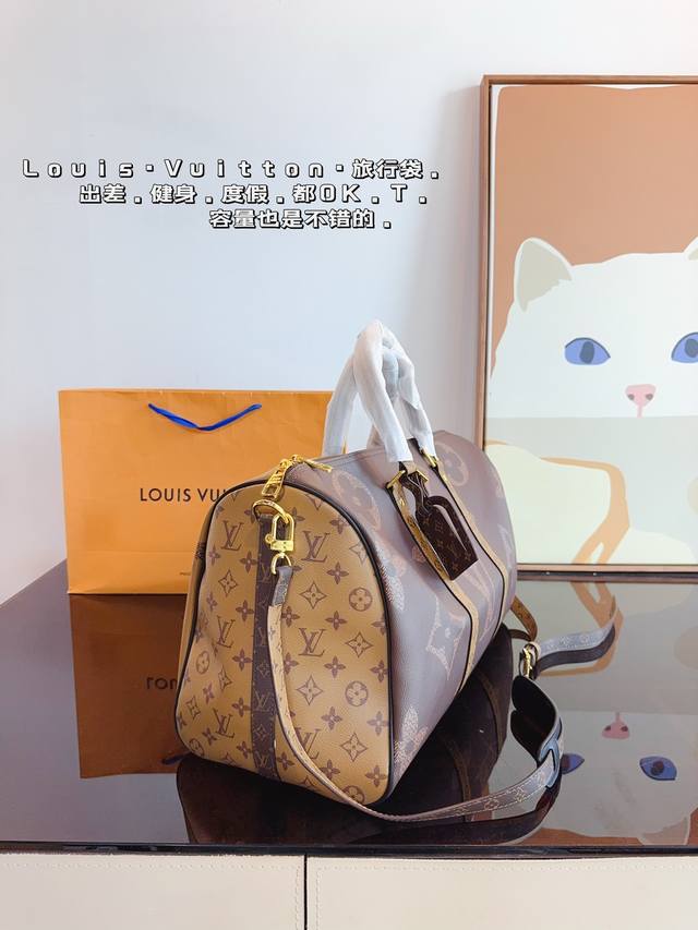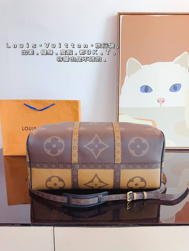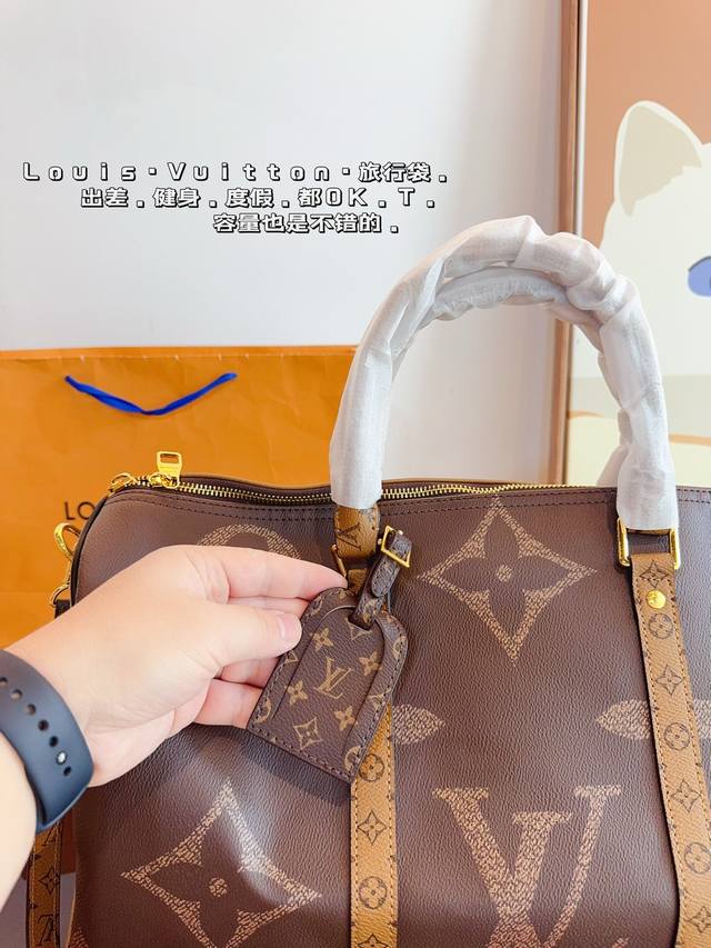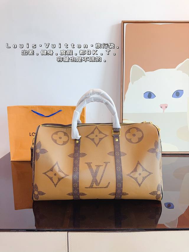 Lv 路易威登联名款keepall 斜跨包旅行包 一只帅气能装的旅行袋 时尚爆发款火热来袭 经典设计大气可观男女通用款 包包采用原版皮质 超级厚实 耐磨 耐用原版logo五金 容量超大装衣服 鞋子超能装 无论是手提还是斜肩背上 都超好看. 尺寸:45*21*26Cm