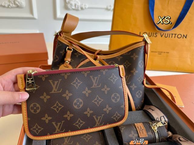 小号 配盒 Size:25×20 超值套盒全套礼盒包装 包包钱包口红包 Lv 路易威登新款carryall购物袋 带有蝴蝶结的腋下包,实用能装~ 子母包设计搭配