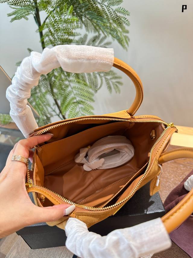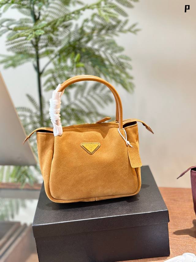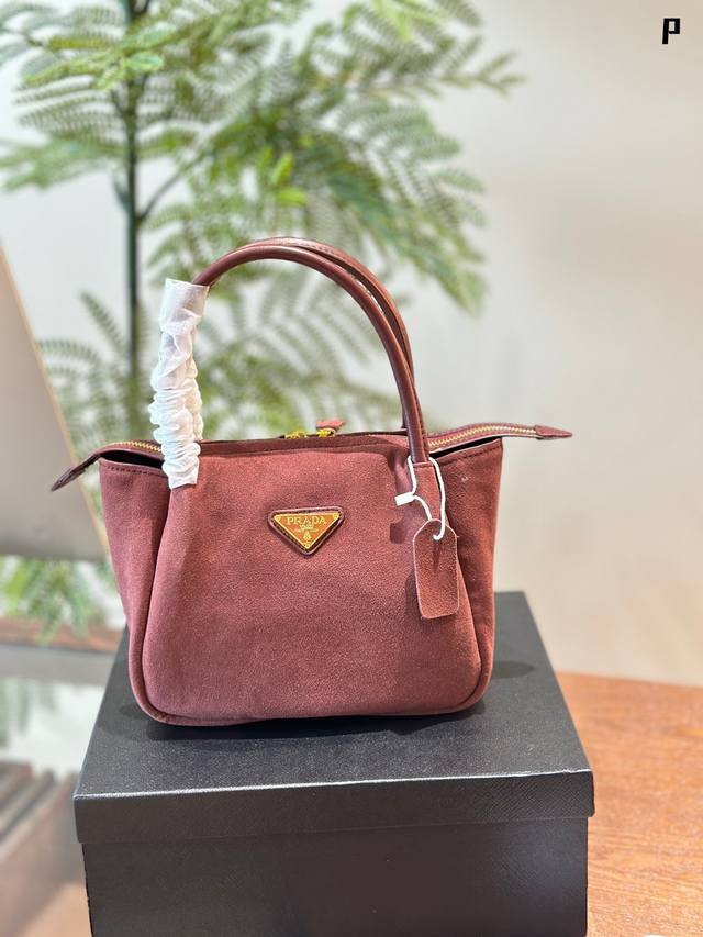 Prada新款 Prada麂皮棕色系列 简约高级的风格也太迷人啦~柔和的棕色麂皮超有质感哒触感温暖舒适散发出精致干练的气息#25Cm 盒子包装