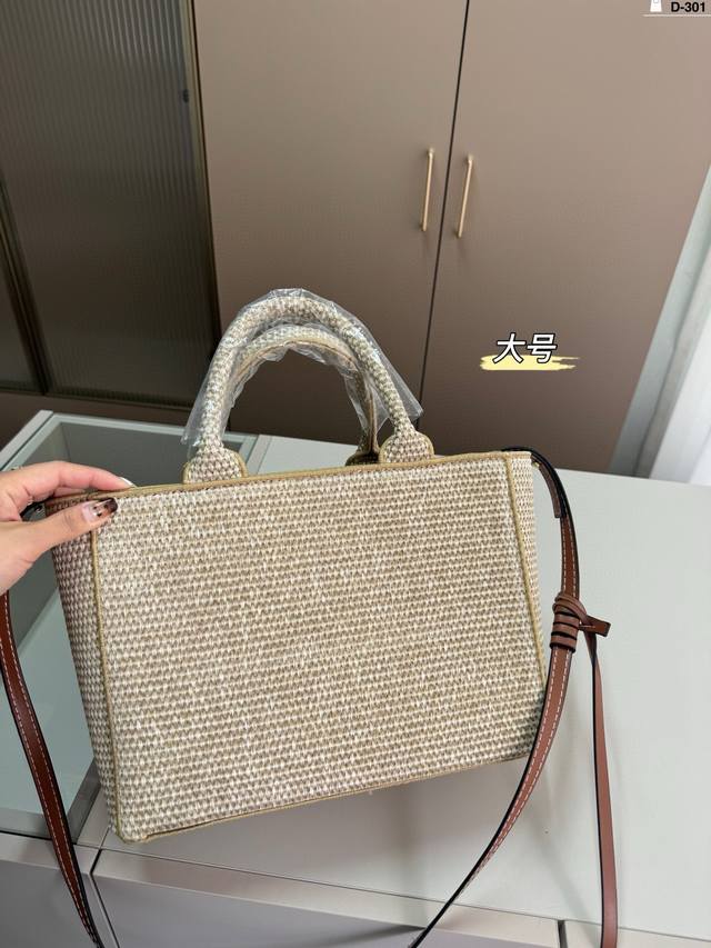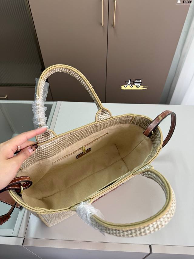 大 赛琳celine 草编托特包 颜色很百搭 很招人喜欢~ 包包整体传递着随性和慵懒感~ D-301尺寸30×22 25×17飞机盒