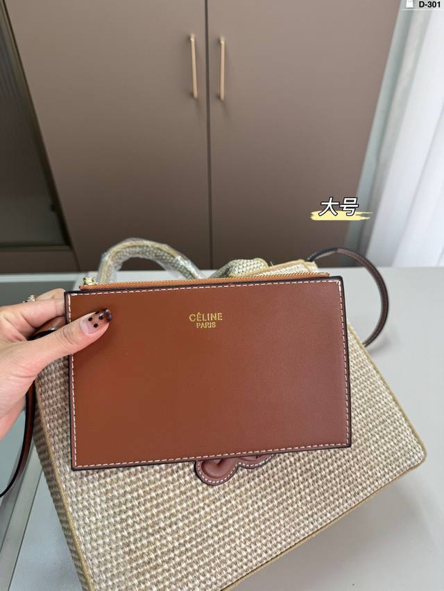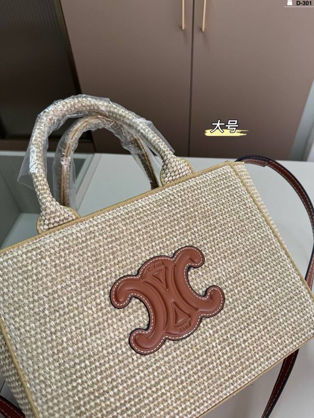 / 大 赛琳celine 草编托特包 颜色很百搭 很招人喜欢~ 包包整体传递着随性和慵懒感~ D-301尺寸30×22 25×17飞机盒
