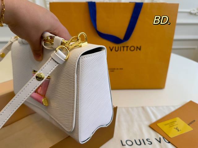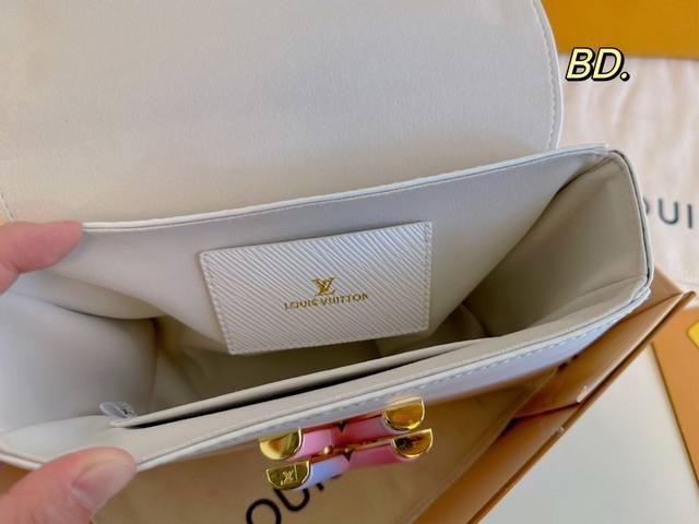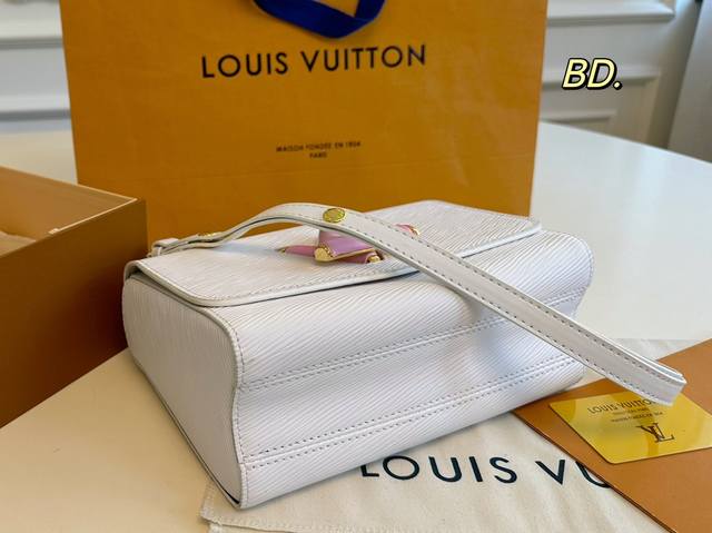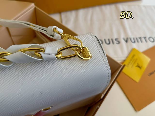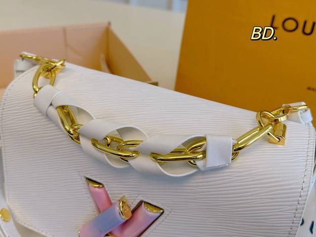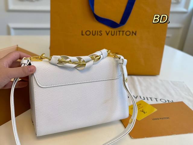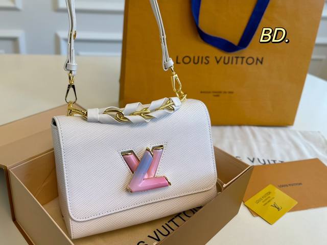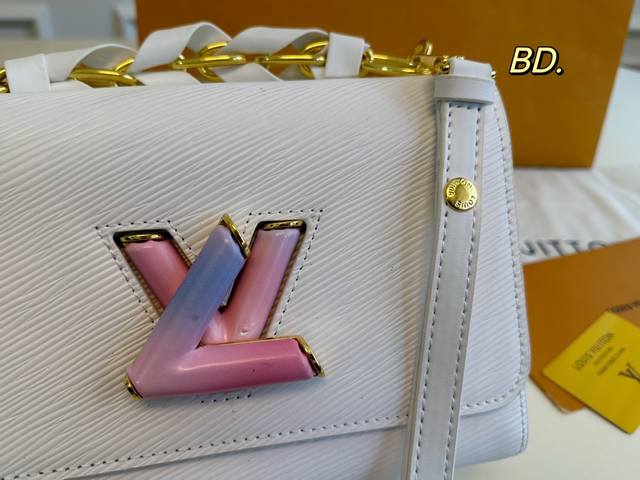 / 折叠盒 Size:23×16 Lv路易威登twist链条手提包 过度色旋转扣 整个包包的亮点 水波纹摸上去既光滑~ 又有明显的凹凸纹理 皮料非常坚硬 防水耐磨