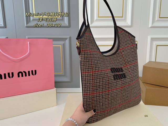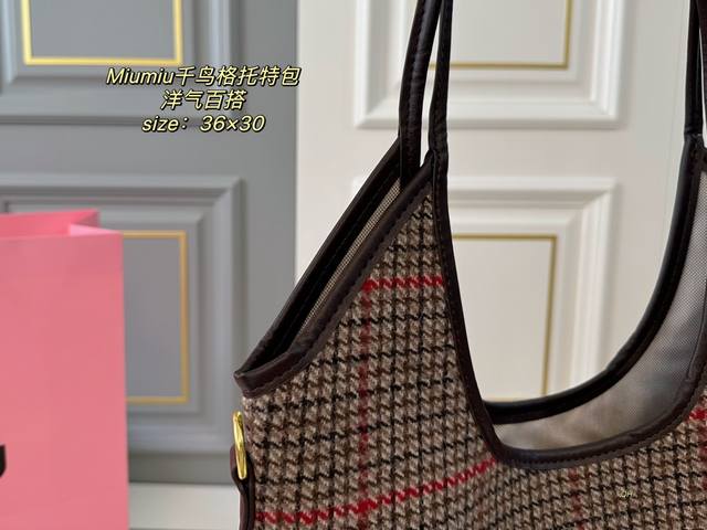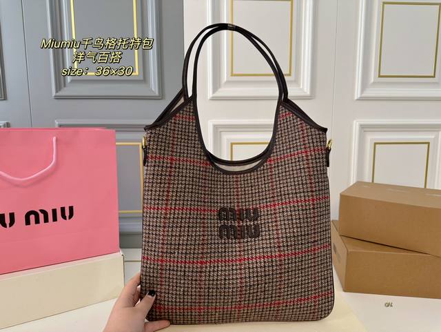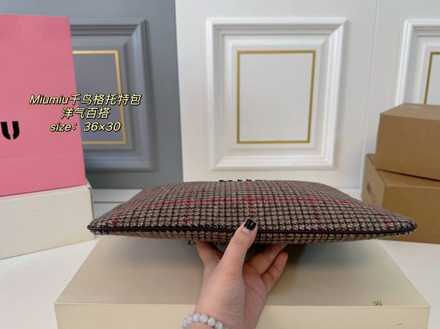 折叠盒 Size:36×30 Miumiuu缪缪新品千鸟格单肩托特包 超级洋气,时髦精的托特 轻便简约,慵懒随性 超大空间,又高级又能装