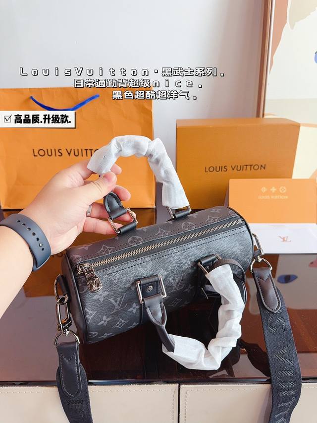 Lv X Nigo Keepall 25.枕头包 手袋是一款理想的都市手袋。 标志性的造型与经典的 Monogram 帆布,加之多种携带方式和奢华的天然牛皮饰边为该包平添一份时尚前卫之感。尺寸:25*11*13Cm