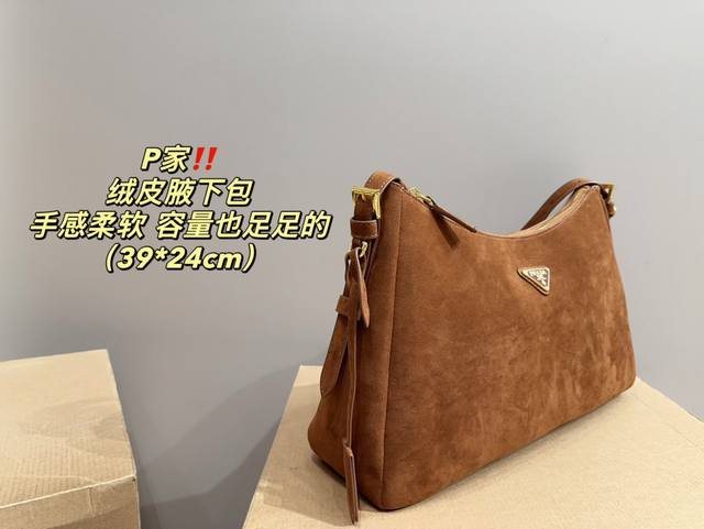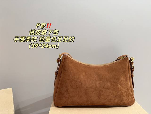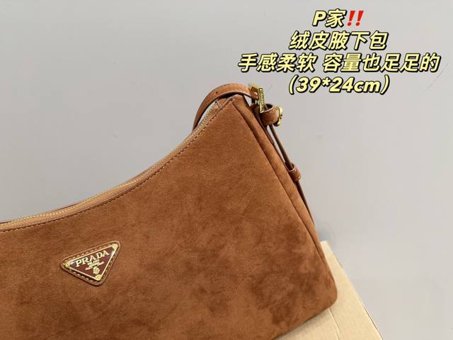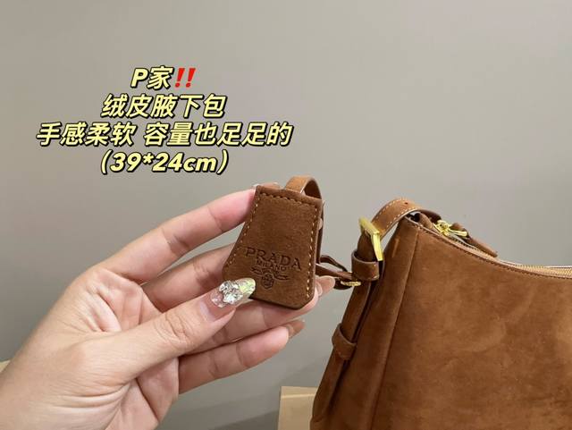 / 尺寸39.24 普拉达 Prada 绒皮腋下包 质感很高级 容量超级大也很耐用 日常出街背它回头率百分百 就是这种随性慵懒感