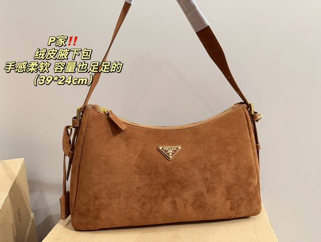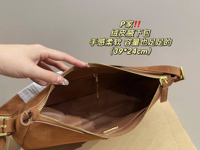 尺寸39.24 普拉达 Prada 绒皮腋下包 质感很高级 容量超级大也很耐用 日常出街背它回头率百分百 就是这种随性慵懒感