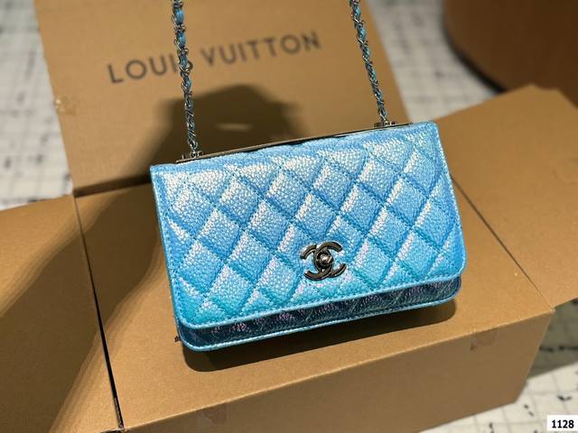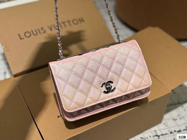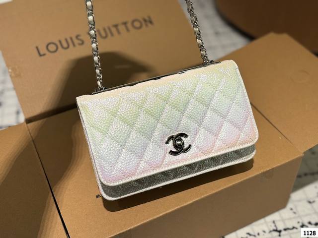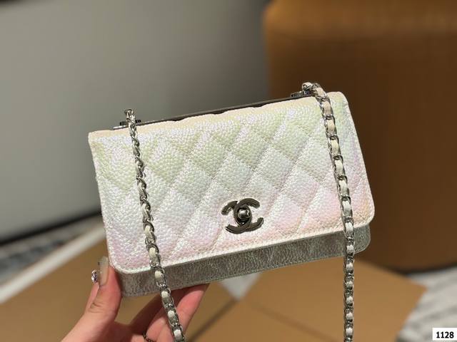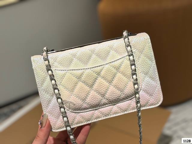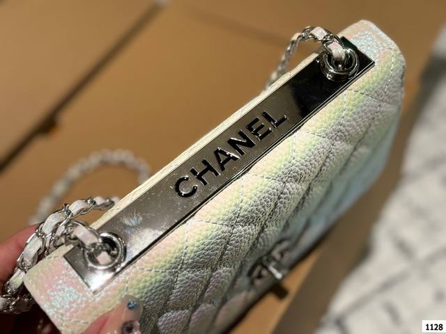 / 折叠礼盒 Chanel 人鱼姬 镭射渐变发财包 还没上新时候就一眼看中了,颜色很特别,渐变金属粉。链条很美很有分量!容量很大 背在身上做搭配也很好看哦f!尺寸2