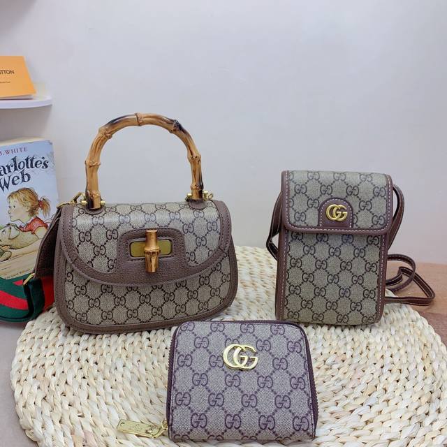 / 三件套 古驰 Gucci 竹节手提包+手机包+钱包 3件套组合 尺寸:大20X15Cm,中12X20Cm,小12X10Cm