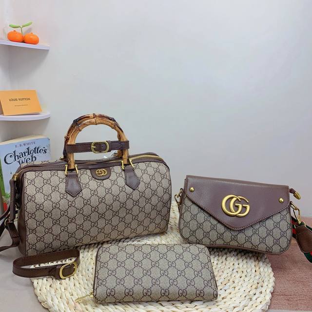 三件套 古驰 Gucci 竹节枕头包+单肩包+钱包 3件套组合 尺寸:大30X21Cm,中22X15Cm,小20X11Cm