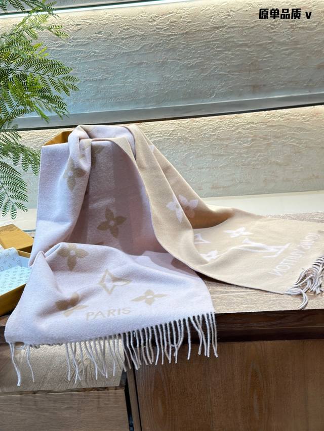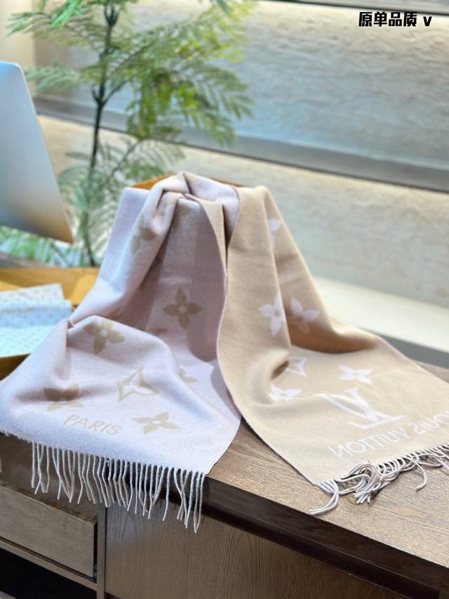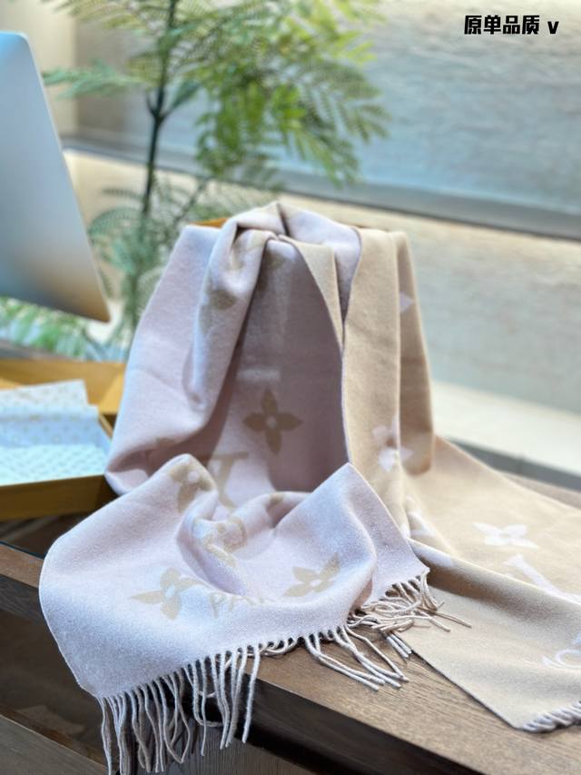Lv爆款围巾必须拥有戴上就是韩剧女主本人lv围巾系列百搭自用送礼都可以 100%羊绒温暖整个冬季◎ 柔软舒适增添时尚品味必须拥有起来卖 190×45Cm盒子包装