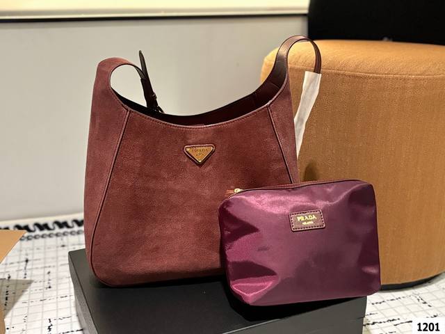 礼盒包装 Prada 普拉达 复古油蜡皮单肩腋下包开春了要背小包啦!...